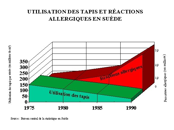 Référence: Des chercheurs oeuvrant au Swedish Institute of Fibre and Polymer Research ont fait rapport d’une étude fondée sur des données historiques pendant dix ans. Ils ont découvert que même si l’utilisation du tapis en Suède a diminué de façon constante depuis 1975, les occurrences de réactions allergiques au sein de l’ensemble de la population avaient augmenté.